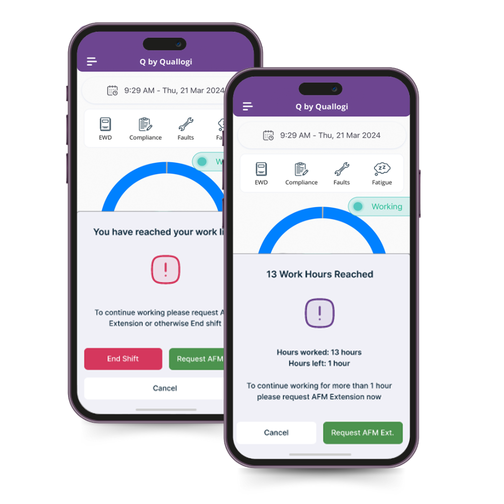 With Q-AFM, compliance is no longer a burden. Our advanced technology simplifies the compliance process, allowing operators to effortlessly track and manage driver work hours while ensuring adherence to regulatory standards. Say goodbye to paperwork and hello to digital efficiency.